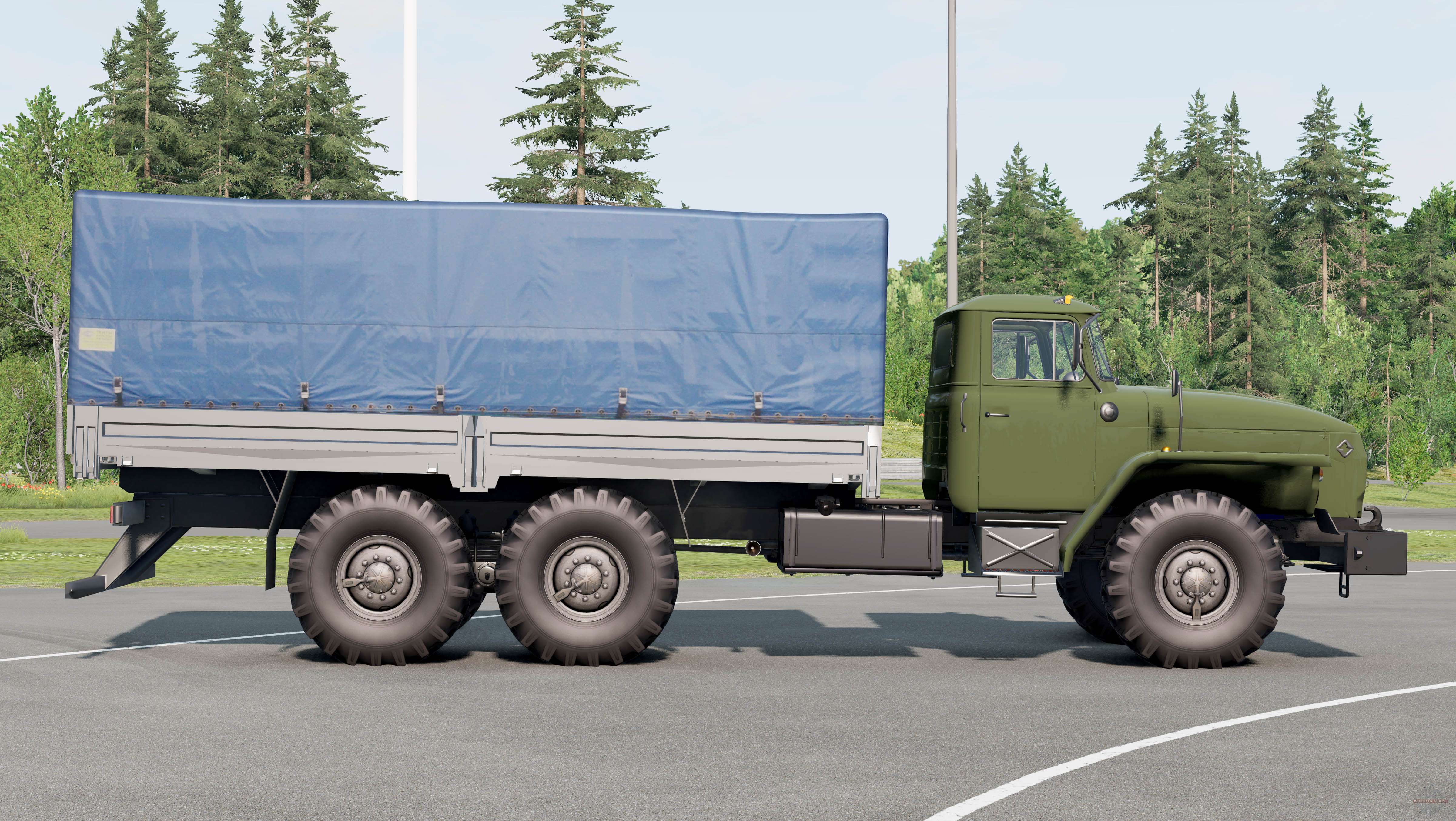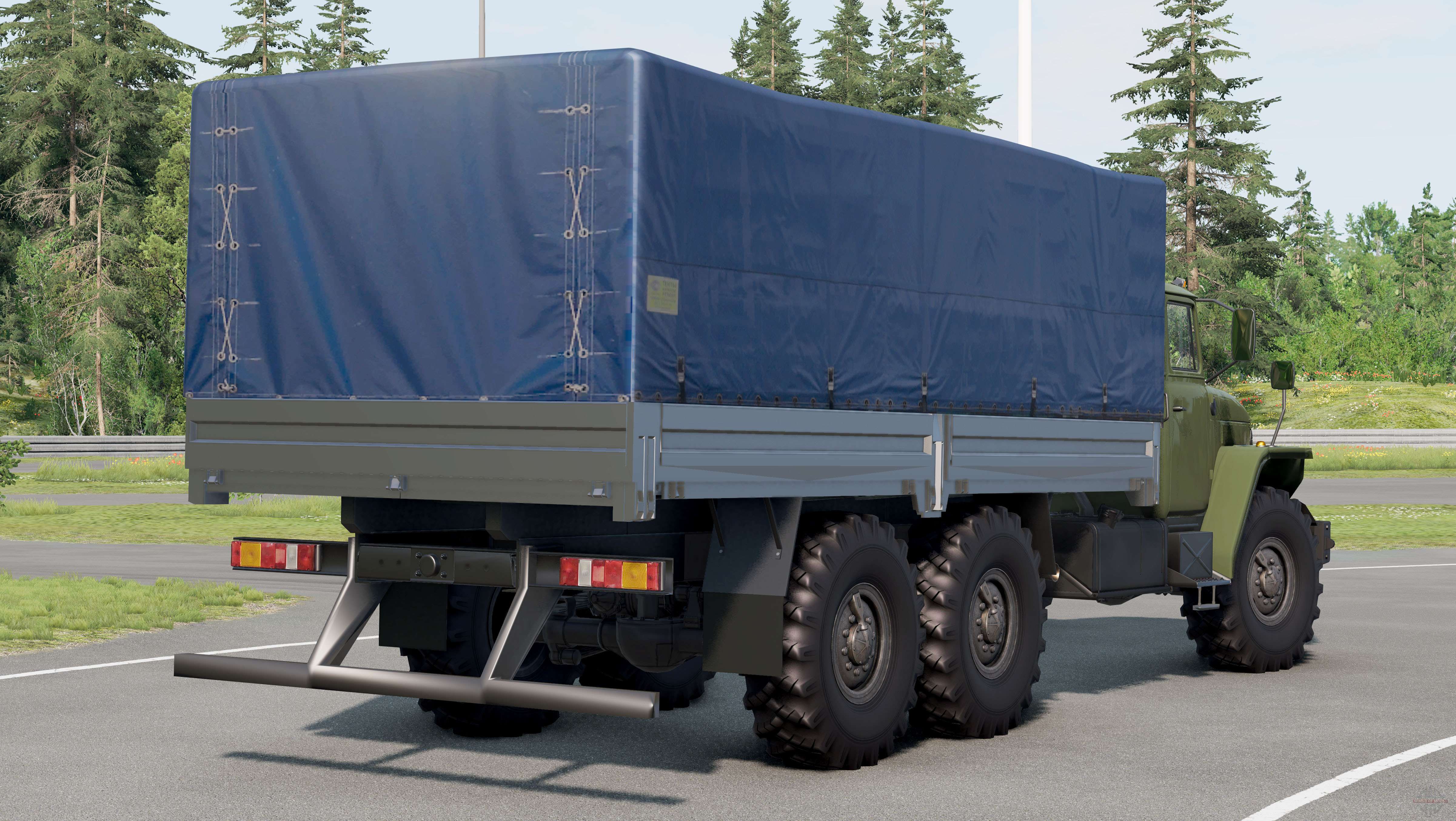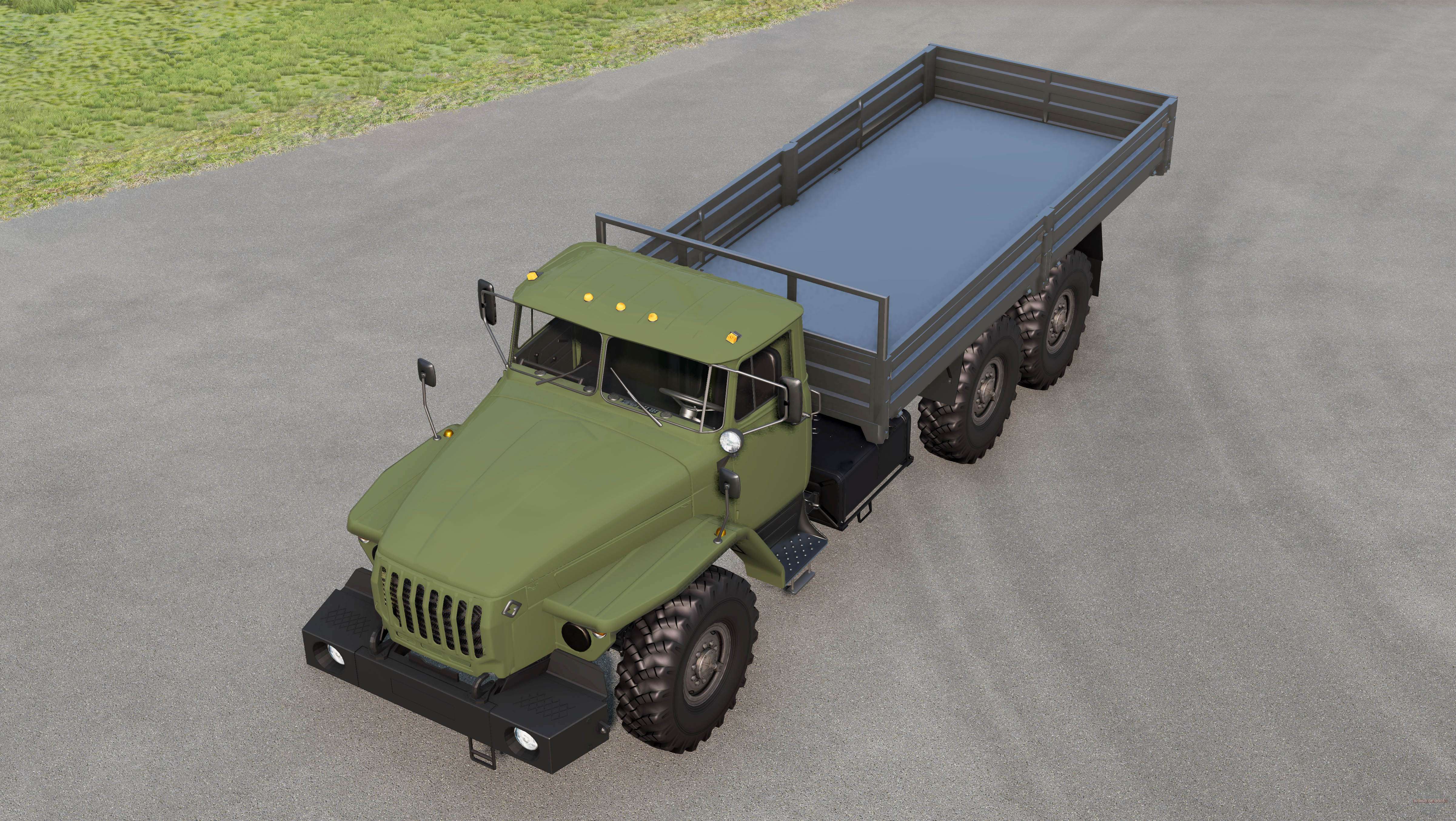 Ural-4320-40 2002 para BeamNG.drive. A modificação adiciona um chassi de carga off-road com uma cabine do tipo capô totalmente metálica.