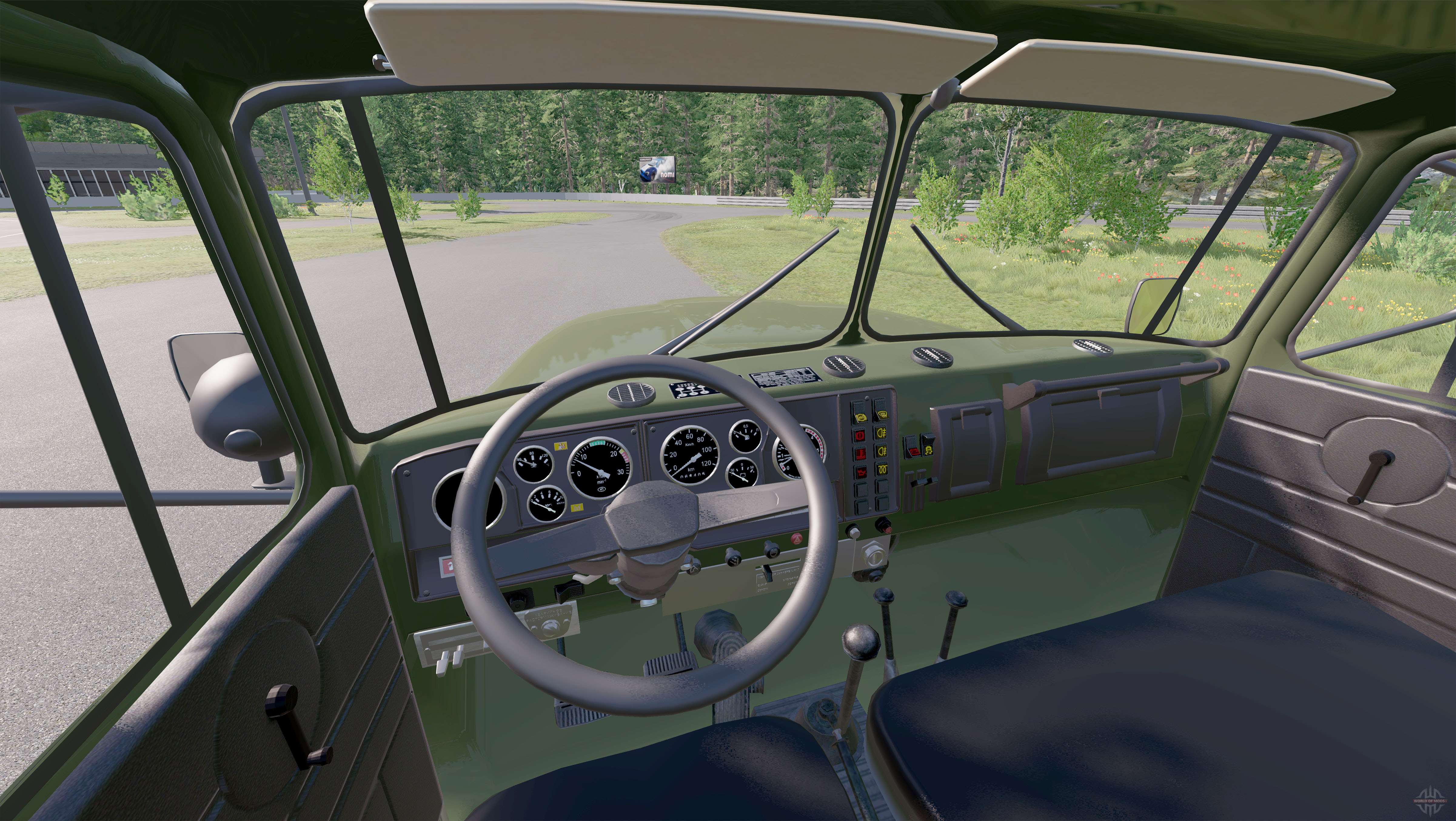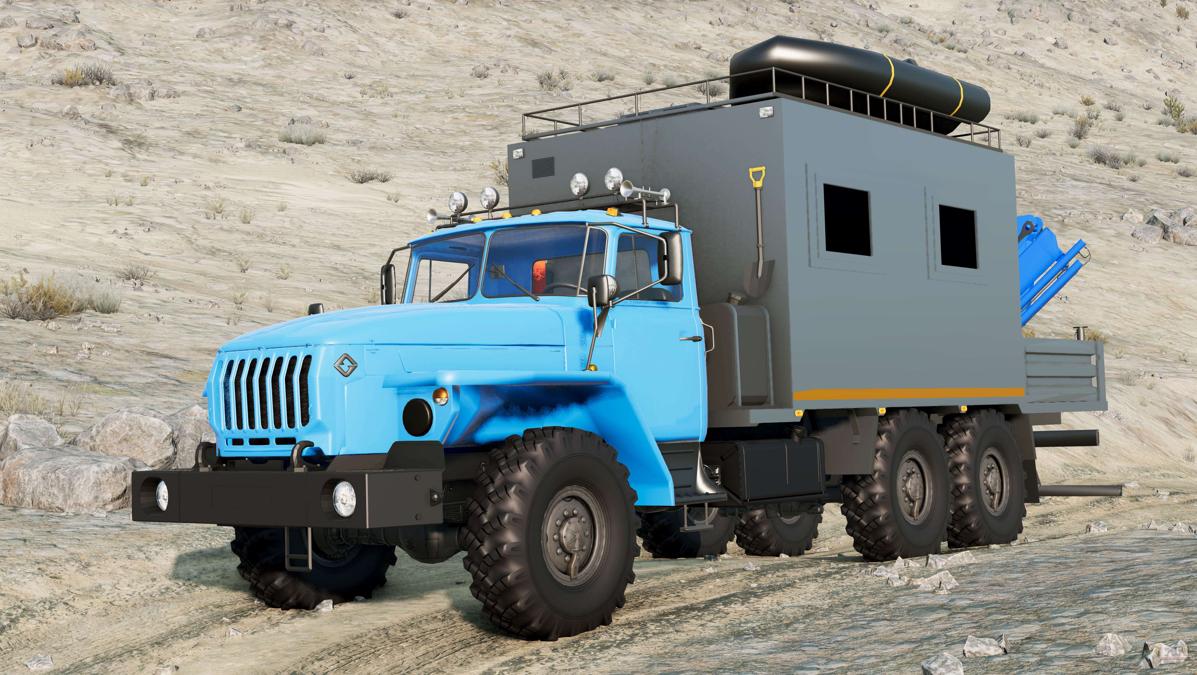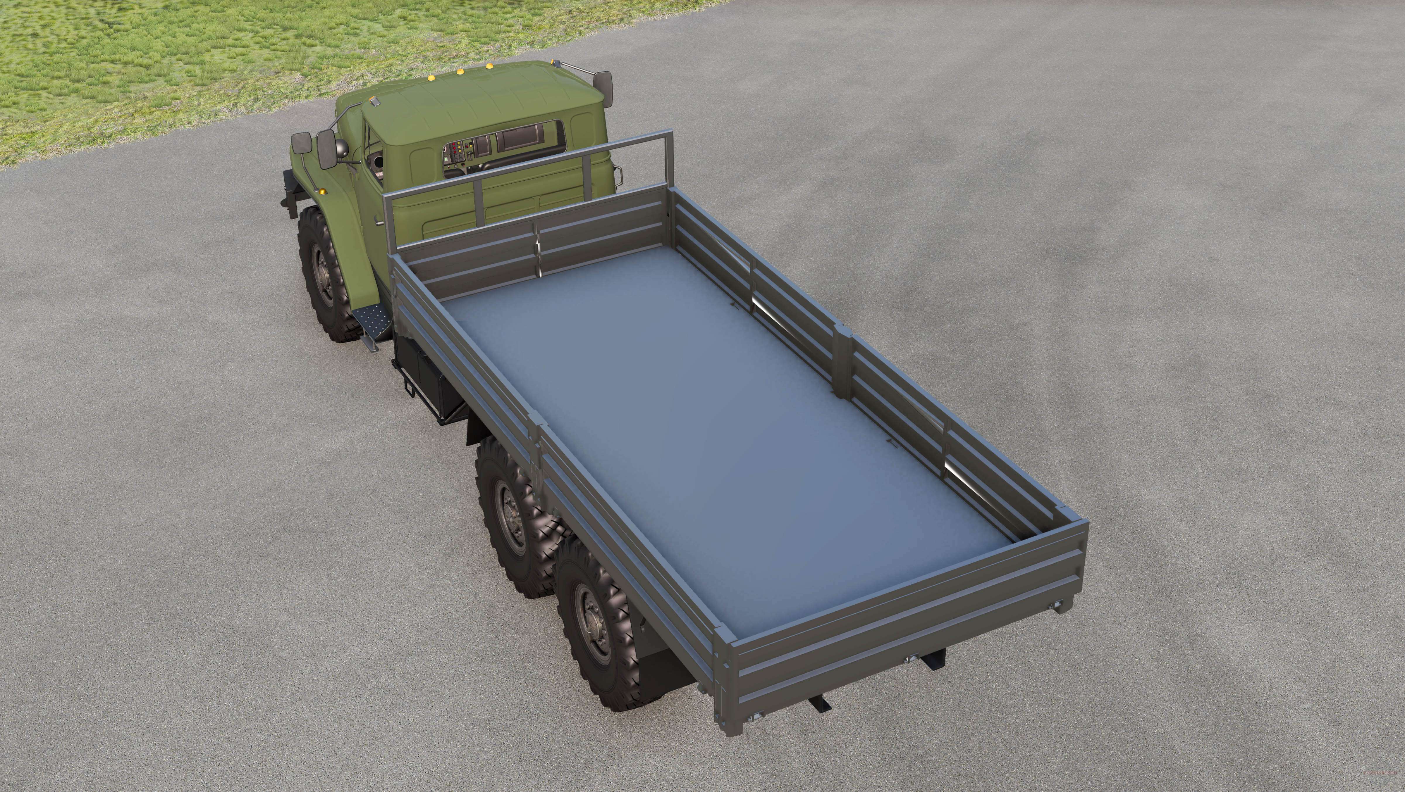 Ural-4320-40 2002 para BeamNG.drive. A modificação adiciona um chassi de carga off-road com uma cabine do tipo capô totalmente metálica.