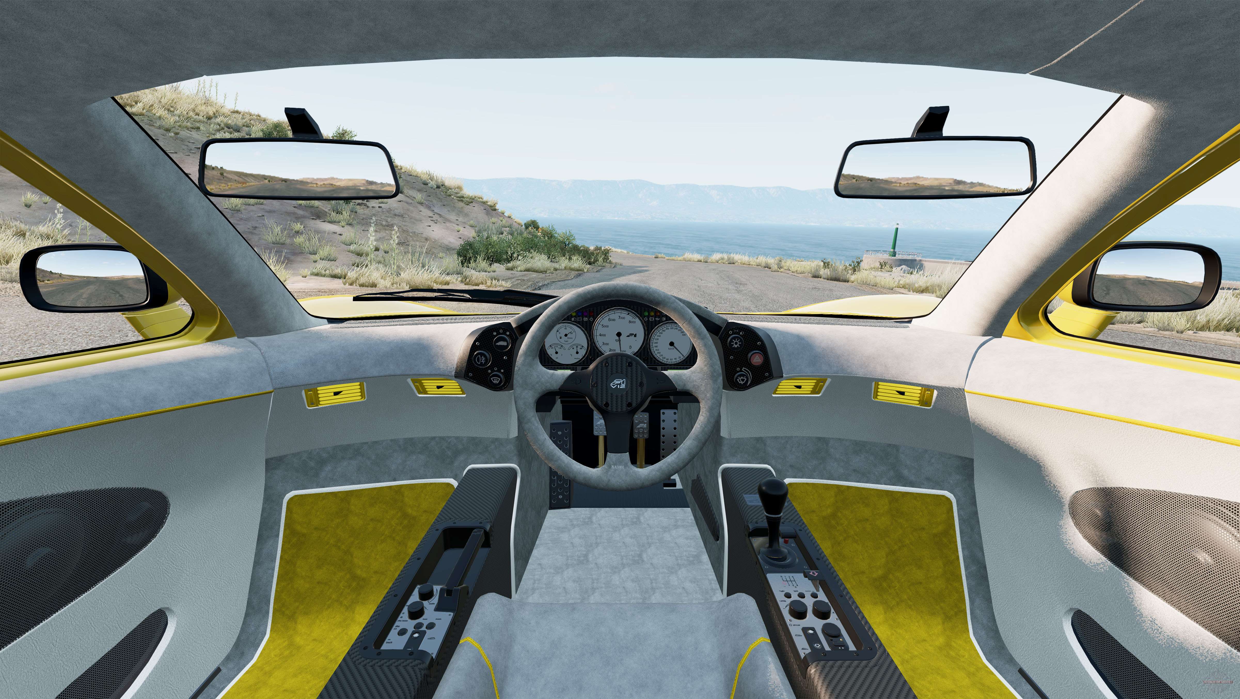 – Pedais e alavanca da caixa de velocidades animados;